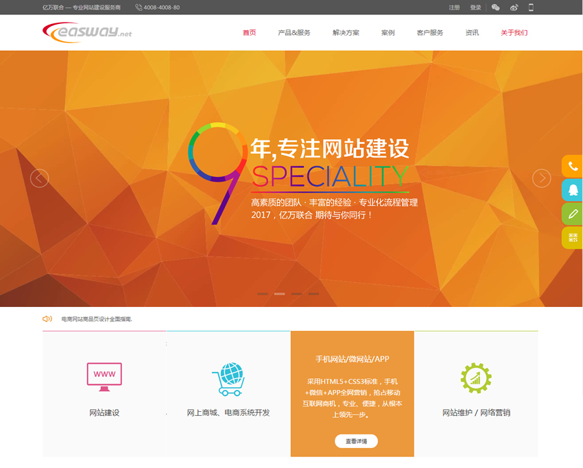 億萬聯合,作為一家有近10年歷史的專業網站建設服務公司,從網站改版策劃開始,就定了一個“小目標“: