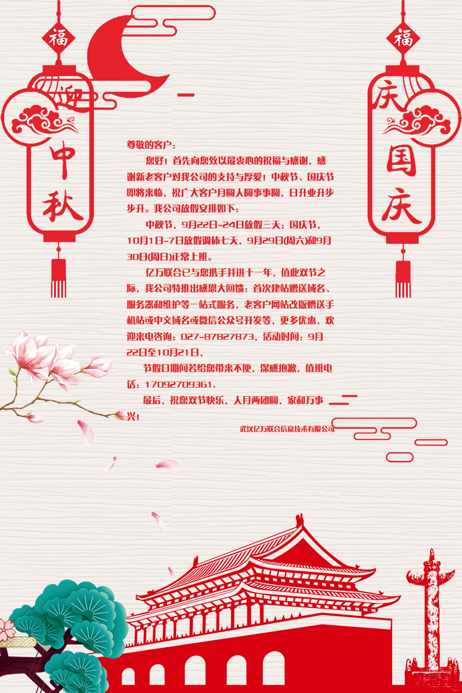 迎中秋慶國慶,億萬聯合全體員工祝您雙節快樂!