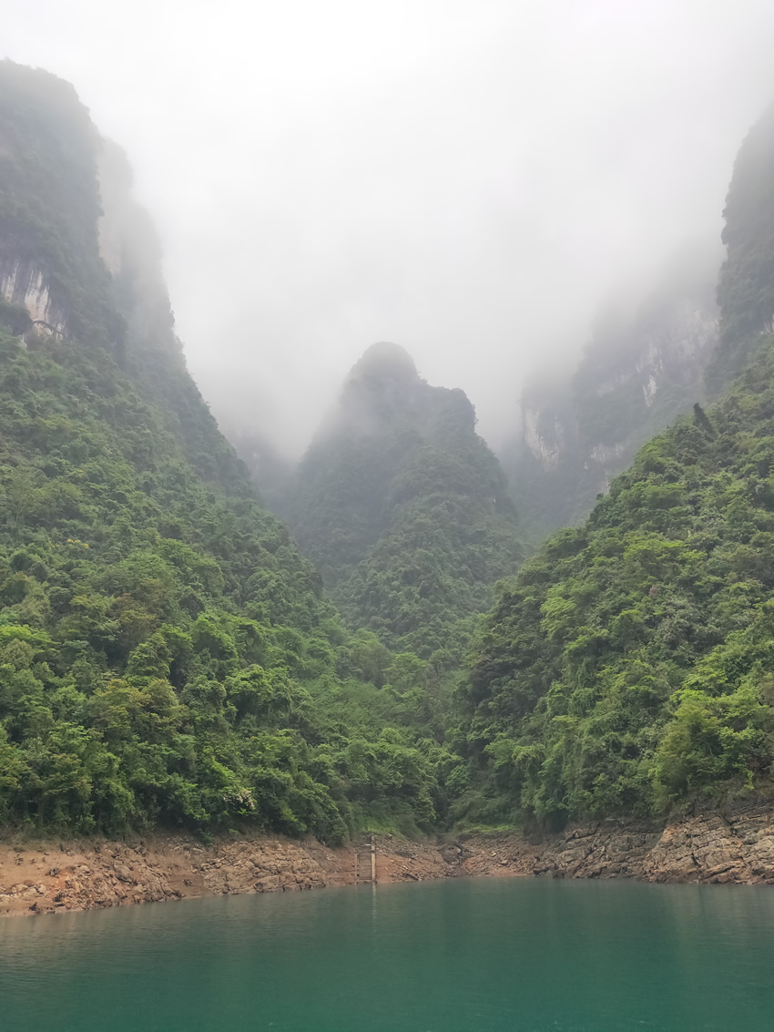 第二天從酒店出發(fā)前往另一個(gè)景點(diǎn),“人在畫中走,畫在水中游”之清江畫廊。這里自然景觀優(yōu)美,水靜谷幽,峰石錯(cuò)落,感受到了比三峽人家更壯觀的山川錦秀、江水瀠回,雖然涼風(fēng)陣陣但怡然自得。這里島嶼星羅棋布,站在船頭,看著江面泛起一層層鱗片似的波浪,四周峰巒疊障,云煙飄渺,宛如仙境。