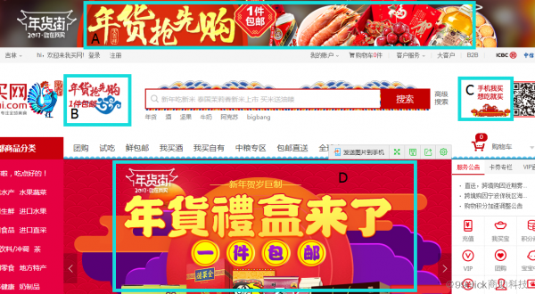 所謂站內廣告是指在網站首頁或者其它頁面,在顯眼的位置為某些商品/活動做站內推廣的一種形式。比較常見的就是一些banner圖。如圖1所示:
