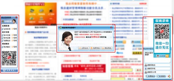本身我們是做網站建設開發的,基于這樣的認知,個人覺得客服彈窗并不是多就好,事實上我們從網建的角度來講,并不認同多做一些客服彈窗就能擴大銷售渠道,所以,在運營網站上就比較重視客戶這方面的體驗,什么百度商橋,各種在線客服系統窗口中部彈窗,統統關閉,一般只在頁面右側留一個在線交流的客服菜單,在次級菜單上加一個“聯系我們”的鏈接,或在網站重要內容里加入客服鏈接。用戶想要聯系時,也很方便,只要點菜單或鏈接即可。這樣既照顧到用戶體驗,又照顧到網站所有者的利益。