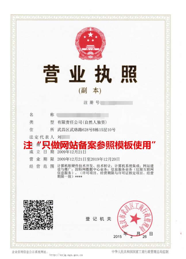 > 郵寄地址:武漢市武昌區(qū)武珞路568號南方帝園B座2204,武漢億萬聯合信息技術有限公司 備案專員 收