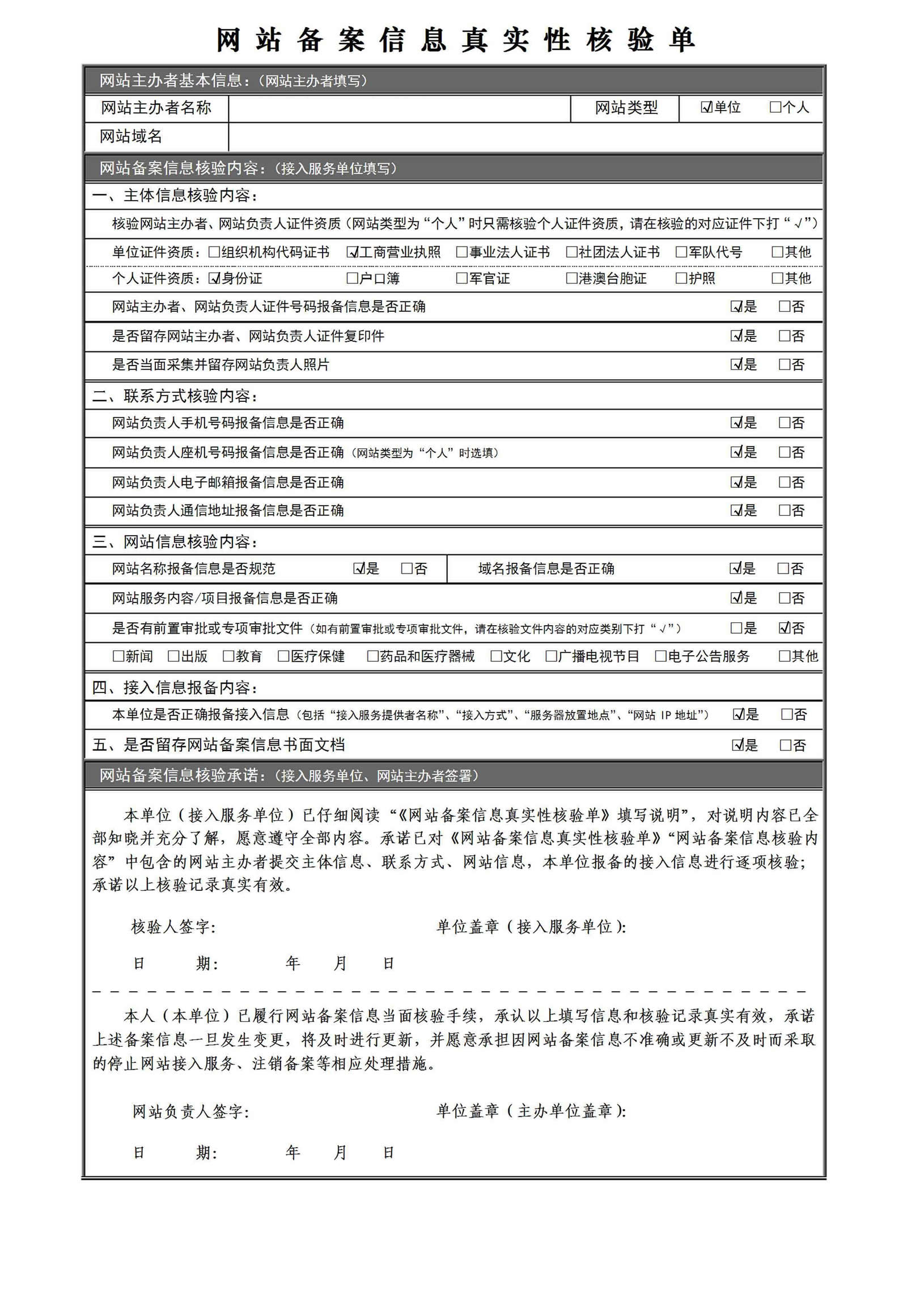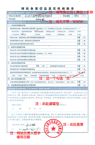 4、網站備案核驗單(網站負責人簽字,加蓋公章)點擊下載